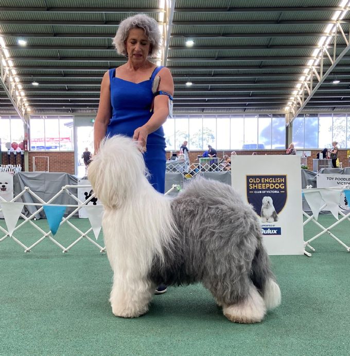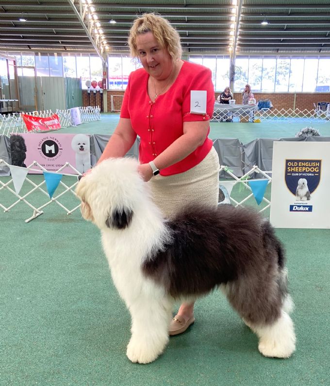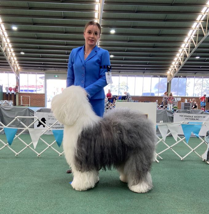 Intermediate Dog Exhibit No. 4. 1st. Pl & D S Hincks CH WOOLEBULL WOMERAH AT SNODRAGON (AI) 2100539108 04 Mar 2020 Bred By: Mr P L & Mrs D S Hincks Itl Ch, Nz Sup Ch Shaggybark American Lover Of Aryakas At Snodragon Imp Usa x Woolebull Skyes The Limit Ccd