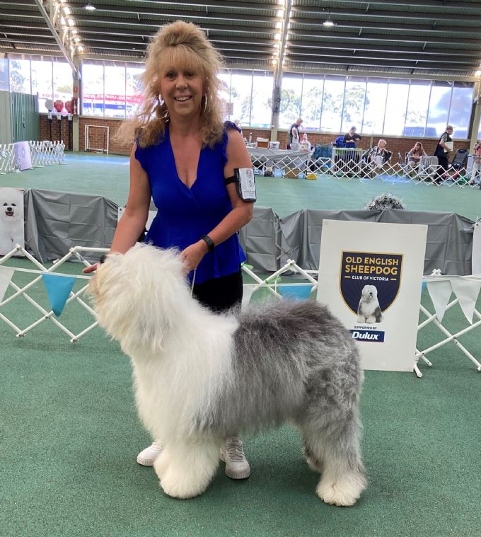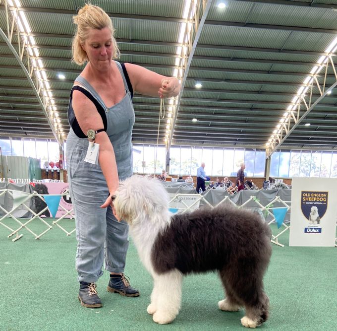Open Bitch Exhibit No. 17. 1st Challenge, Best Open in Show, and BIS. Mrs Dawn Duncan WOOLEBULL VENEZIA WINE AI 2100509294 08 Nov 2018 Bred By: Mr P & Mrs Hincks Youandi Grand Vintage (Nld) x Ch Woolebull Skys The Limit Rn